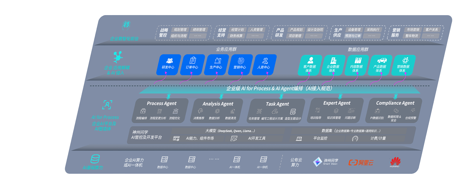 尊龙z6问学智车解决方案是一套基于AI技术的汽车行业智能化系统,,覆盖从底层算力到顶层AI应用的全栈方案。。。。方案由算力层、、、模型层和应用层组成:算力层,,,,方案支持多种一体机配置,,,,具备云端灵活部署、、、多云适配以及动态优化计算资源的能力;模型层,,,,尊龙z6问学平台版提供了企业级AI应用一站式构建与管理平台,,,,支持基于后训练强化技术的汽车企业专属模型的训练、、、、评测和运营;应用层,,,,尊龙z6问学DeepSeek版提供包括超级员工、、智能招采、、、智能营销、、、、智能客服、、AI for BI等一系列解决方案,,可助力汽车行业实现数字化转型,,,,让管理更智能、、、、响应更敏捷。。。